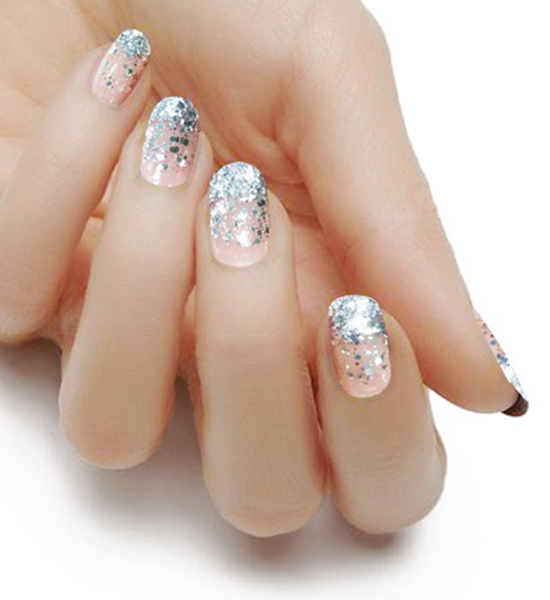 Silver Queen has silver confetti glitter over a transparent background. Layer it with ombre or solid underneath for different looks!