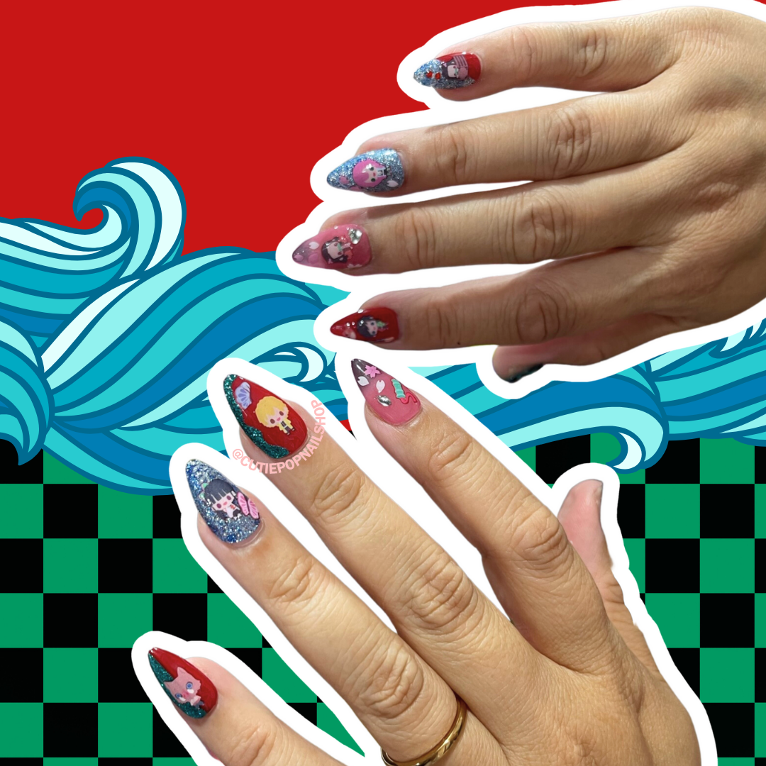 Each set features the inspired chibi characters with our Chibi Slayer nail decals! Resuable gel nail press-ons.
